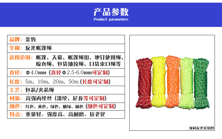 戶外野營反光帳篷繩
